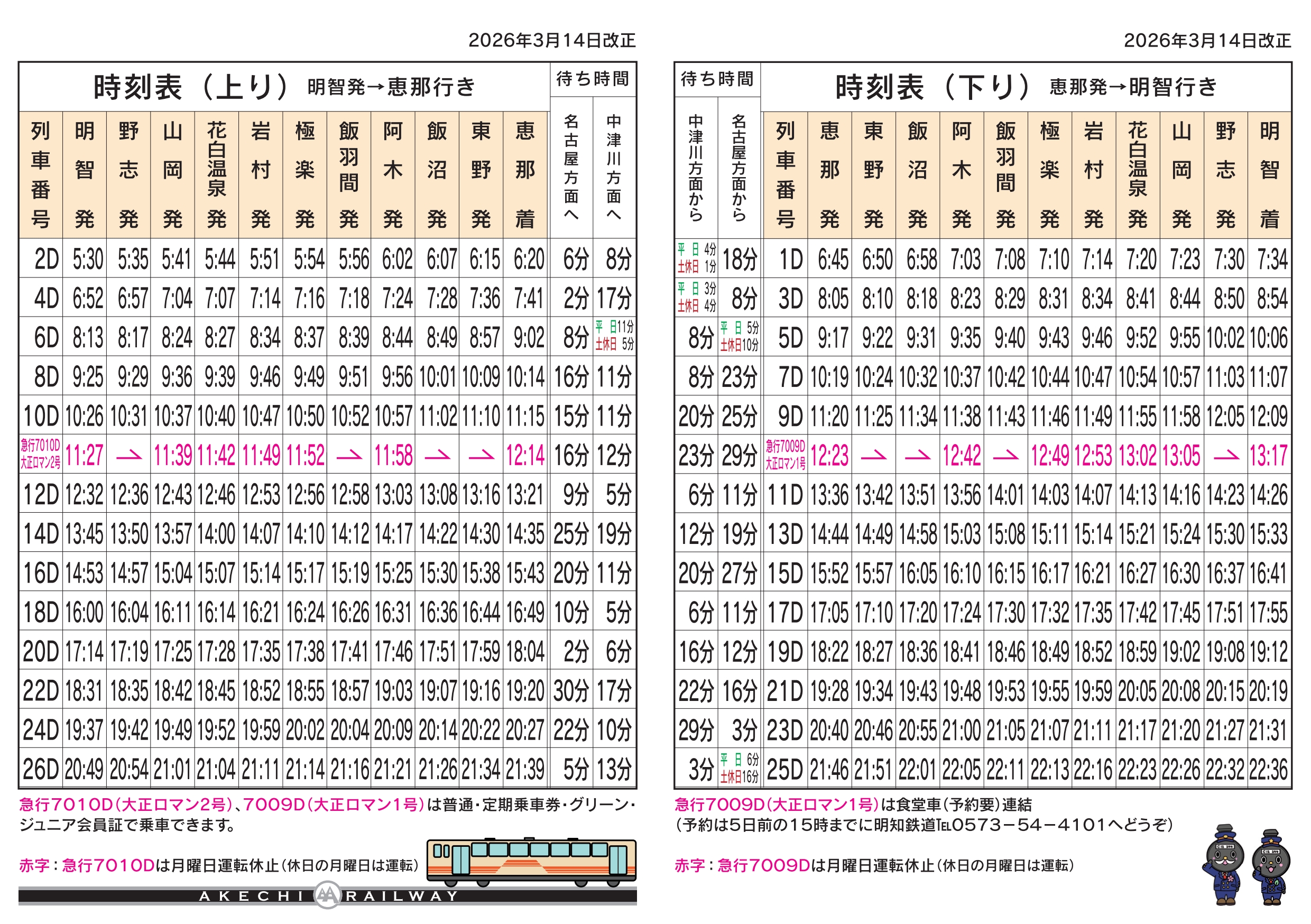 各駅での新ダイヤのポケット時刻表設置は3月9日を予定しております。
